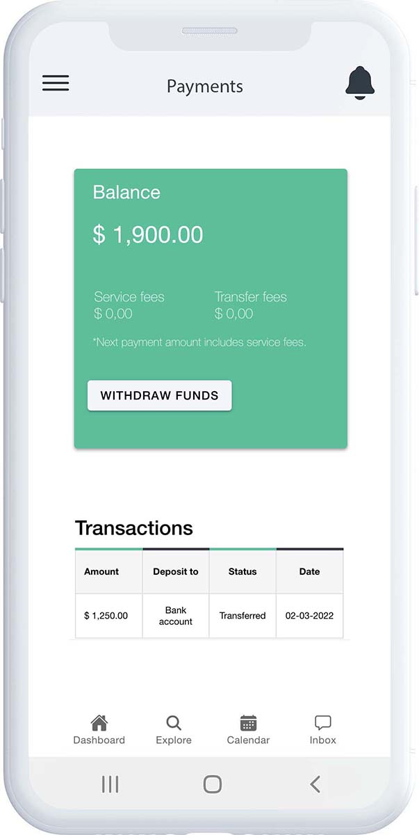No need to worry about setting up complex payment gateways. Just add your bank account number and withdraw your finalized earnings with a single tap! We process payments at markets' flattest rates and there are absolutely no hidden service fees.